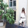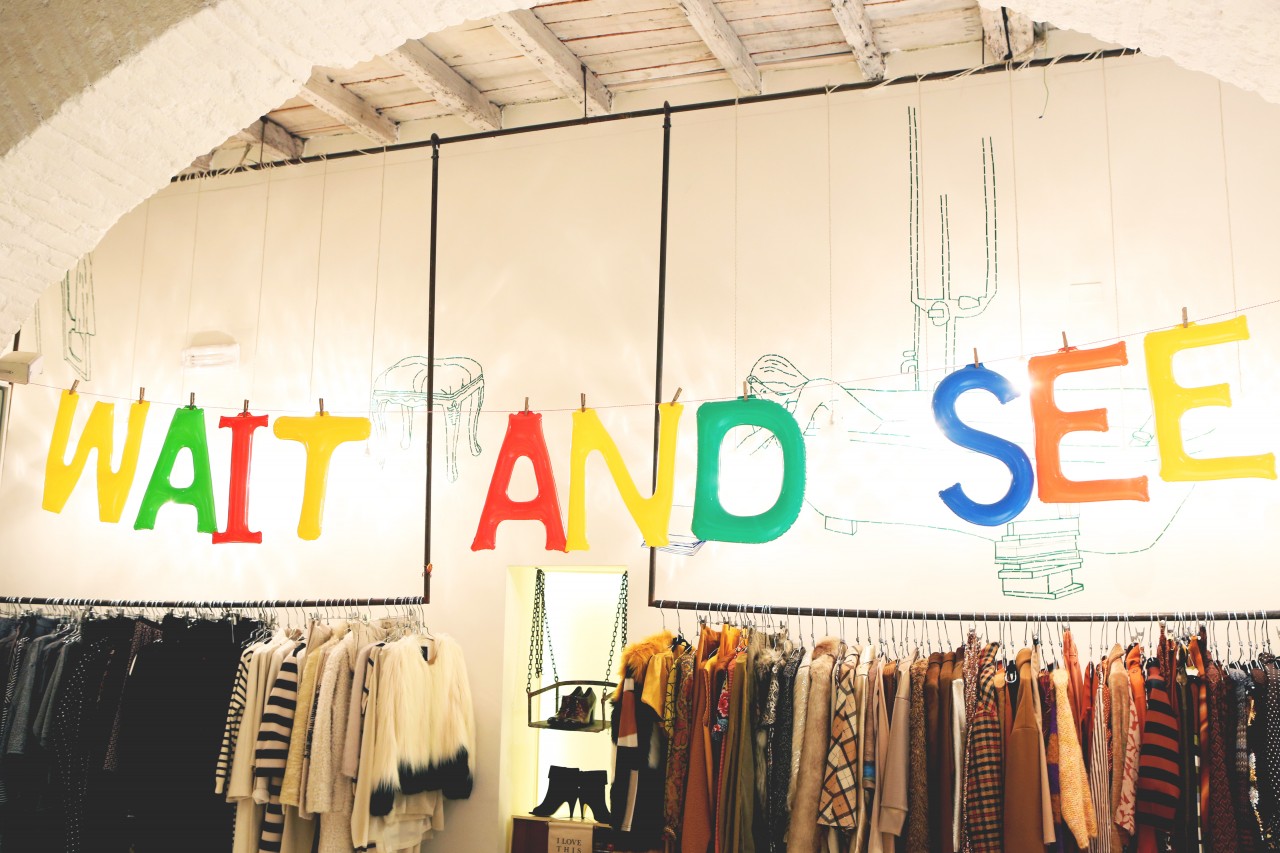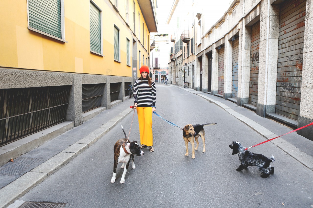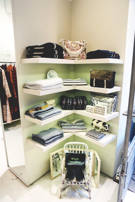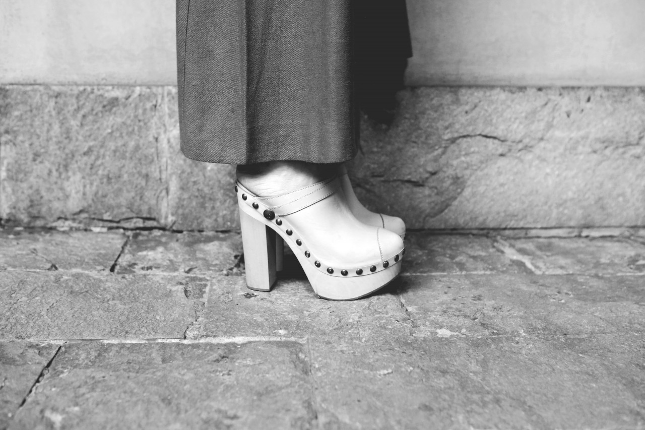 But today we have a shopping date in Milan and I get a sense of Melusine, the fashionista. “Do you mind if we reschedule for a few hours?” she begged me on the phone earlier. “I went out really late last night and this morning I had the Ferragamo show, so I think I need to sleep a little bit more.” Not a problem. Been there, done that. When she walks in the door of Wait and See around 3 PM, she looks rested, radiant and ready for action. She even put on red lipstick, which, set against her pale skin, makes her look like a modern-day Snow White, albeit slightly hungover. She picks her outfits with deliberate motivation. She loves oversized boyfriend blazers and elegant pant suits, nothing too flashy or overtly retro. She’s in her element, repeatedly asking to see “the effect” of each shot on my camera screen and trying new poses. “I love making pictures,” she smiles.