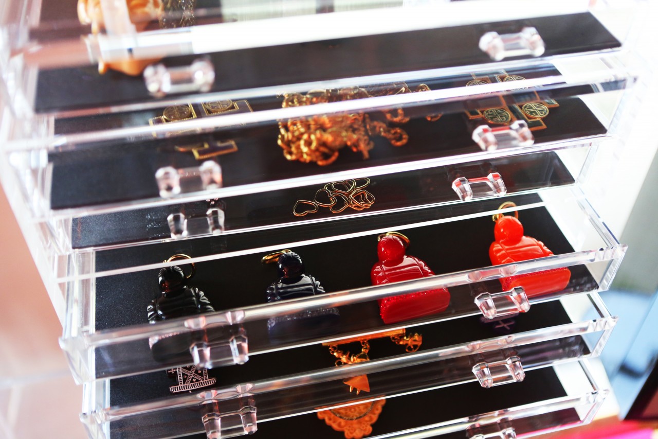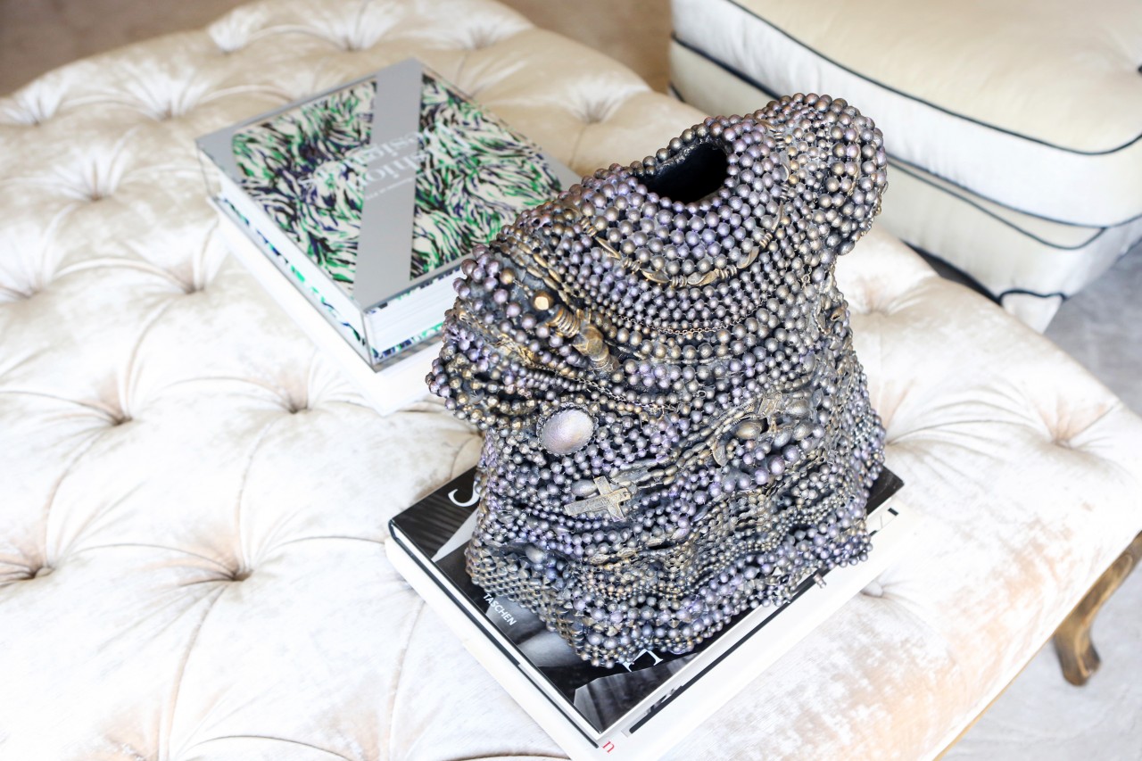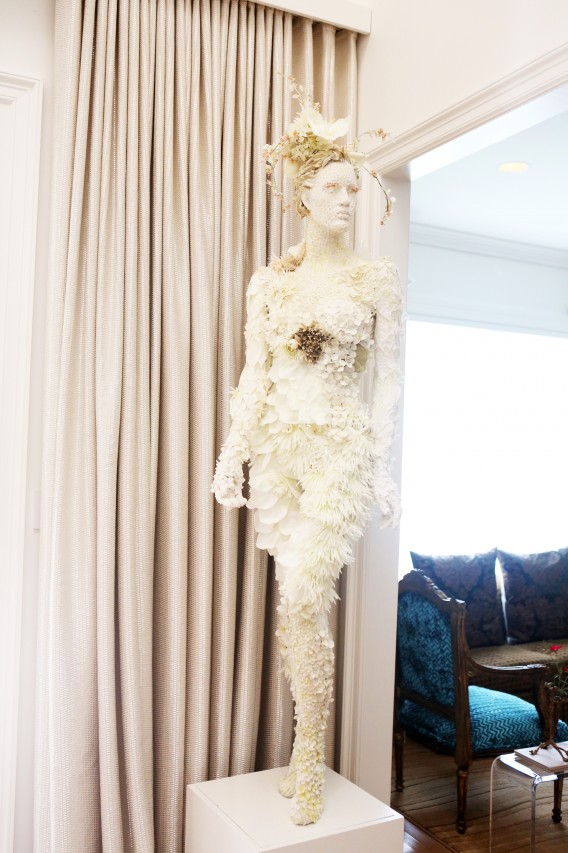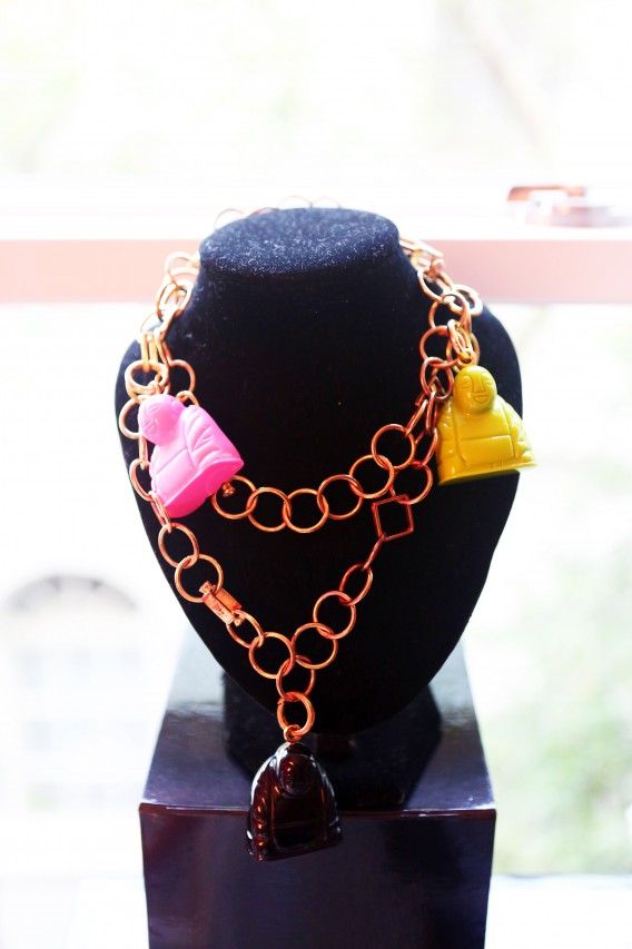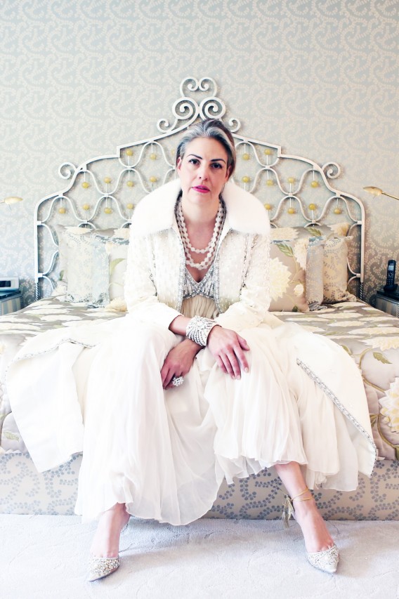 So who is this woman with her non-descript accent and pink boudoir? We’ve moved to the bedroom now and bonding over vintage, jewelry, Tokyo and modeling. I can tell she’s done photo shoots before but she’s very modest about it. Instead she sends me a discrete one-page bio which affirms just how ignorant I am. This is way better than a soap opera!! Born to a Mexican mother and an Austrian Count, Jessica Bowers Von Hogenberg spent much of her childhood traveling between Europe, Mexico and the United States. She began her fashion career at fourteen as a model and walked for Hubert de Givenchy – gasp! She studied Fashion Merchandising and Textiles and held executive positions at Neiman Marcus and Saks. She worked directly with Gianni Versace, Yves Saint Laurent, Valentino and Bill Blass. Her husband Bill advises consumer goods and services companies (Design Within Reach, Wired, Peet’s and Coffee, etc.) on how to grow their business. She opened two four-star restaurants, sits on the board of a handful of non-profit organizations, launched her jewelry company, BuDhaGirl at the beginning of this year and sold five of the ten flower statues she made “because I couldn’t sleep. It was better than watching TV or drinking”.