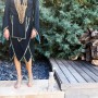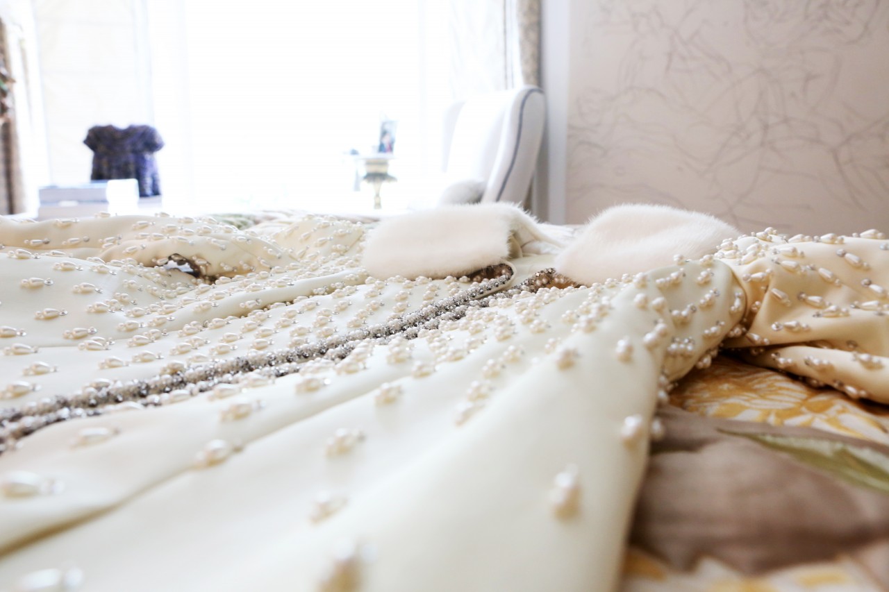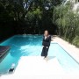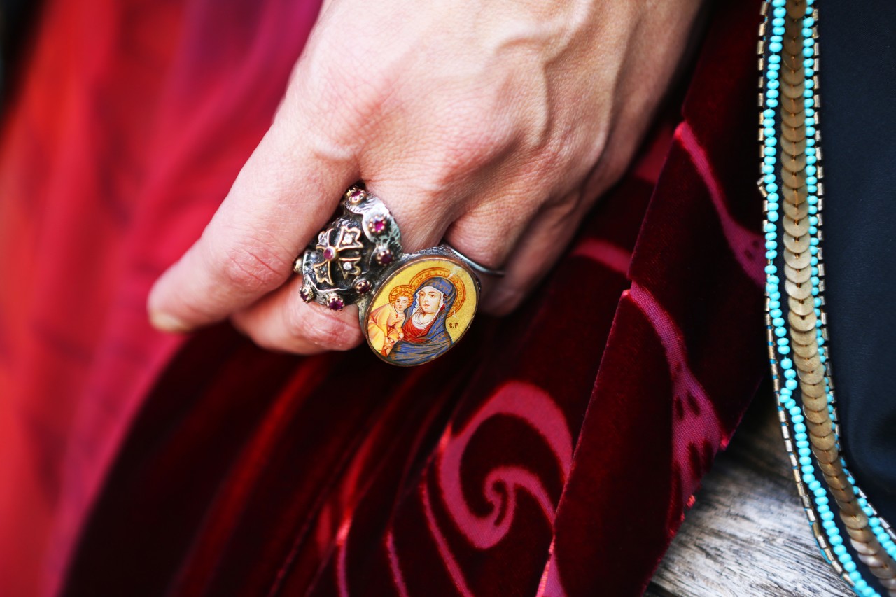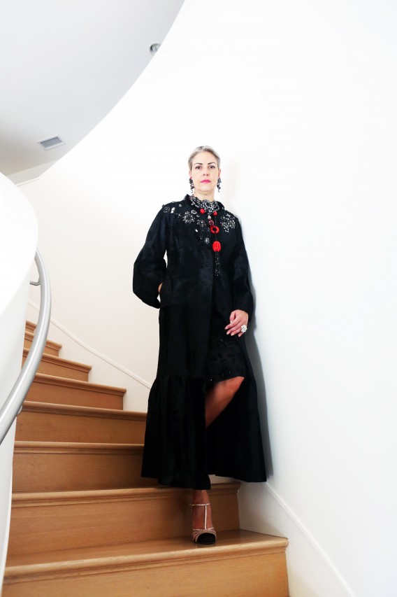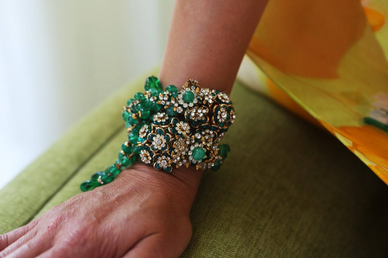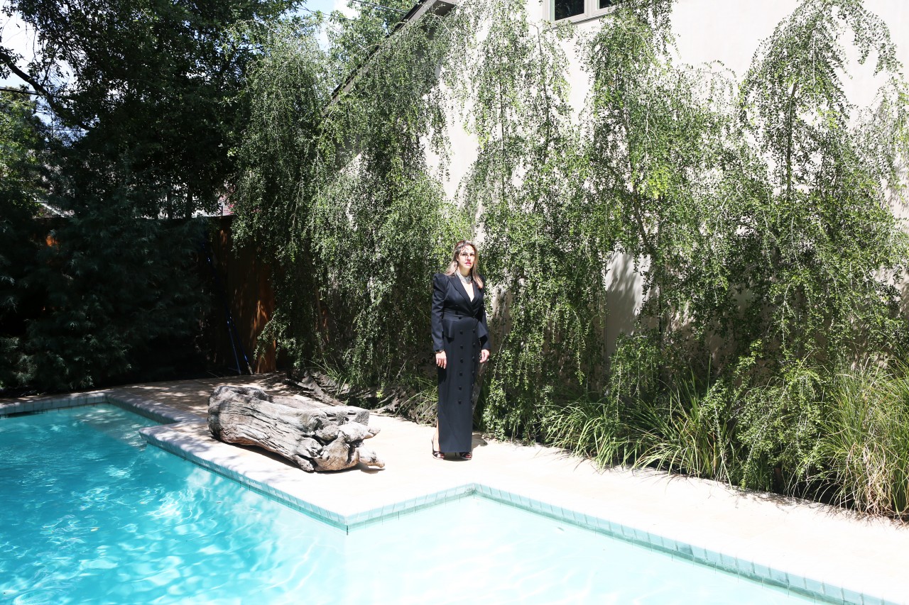 The wonderland tour continues to flabbergast until Jessica opens the closet she’s curated for our shoot. That’s when words and vocabulary become nihil and I manage to just utter a long and exasperated whimper. Jessica’s vintage collection was handed down over generations of fabulous women. There’s the cream chiffon empire waist dress and matching beaded coat she wore at a gala when she was pregnant. “According to my godmother this was a Pauline Triggere… but there is no  label,” she shrugs. And the gold scarf, “gold as in real gold, given to my godmother by HRH Prince Faisal,” she winks. “I can’t confirm this because my godmother told great stories… And this might be one of them!” And the black Galliano tuxedo dress she happily hops in the pool with. “My mother has amazing clothes,” she confirms. “She was of a generation that went to New York and Paris for actual fittings. And some amazing dealers all over the world. My favorite is Heritage in Barcelona. The owner, Edgardo is as interesting as his shop of wonders.” And then there’s the drawers upon drawers of vintage jewelry. “My business partner (in Budha Girl)  is a real collector”, she beams. “She always finds amazing things!”