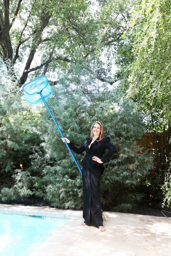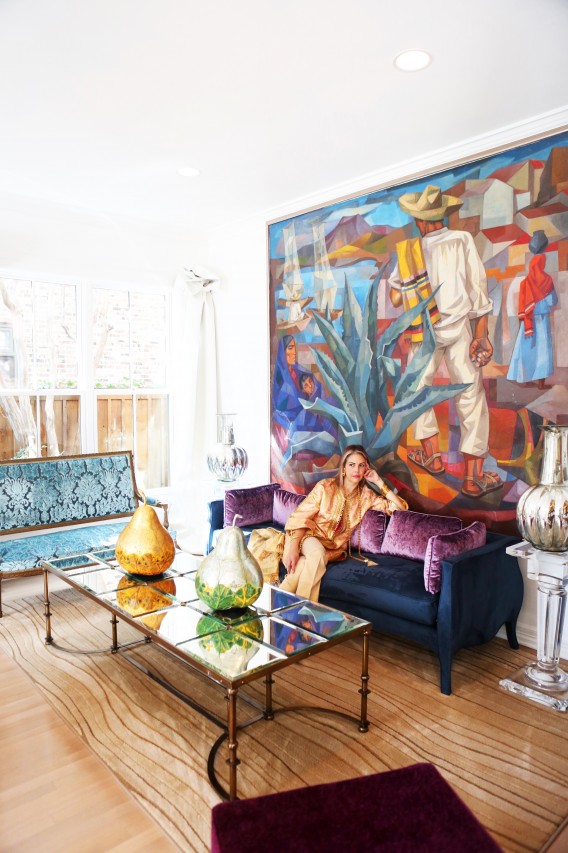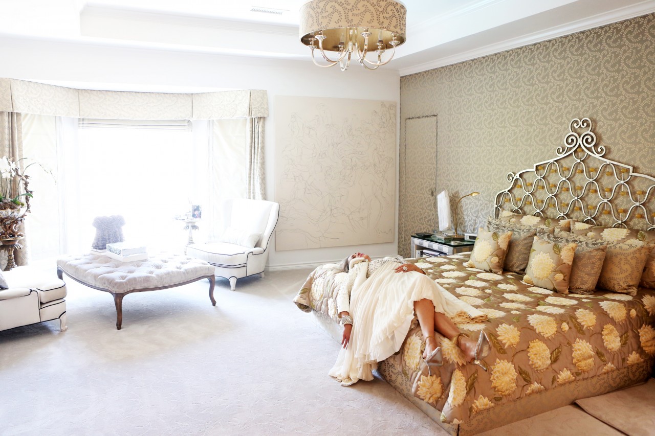 I’m not sure what to think when she opens the door. Here is this pretty woman, probably fifty, in leopard print capris, a medusa-clad Versace chiffon button-down blouse and nineties mules, with blonde wispy hair and sparkly blue eye liner, smiling at us, in a manner that could conceal she’s either sleepy or uncomfortable, I can’t tell. So far I’ve only seen the driveway and the sprawling green neighborhood we just cruised through but the magenta grand piano in the hall way and life-size flower woman statue behind her give my current visual the allure of mixed-era grandeur. I can’t decide yet if it’s tacky or genius and I consider that this shoot could either be a tremendous disaster or one of the great, mind-blowing experiences of my house-crashing life. I’ve seen Dallas, the television series – though I was a much bigger fan of Alexis Colby in Dynasty – but that’s as far as my actual knowledge of the city and its flamboyant inhabitants goes. I’ve literally been in Texas less than an hour and I’ve never met Jessica Jesse before in my life but I’m about to get served the best slice of the Southern pie.