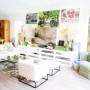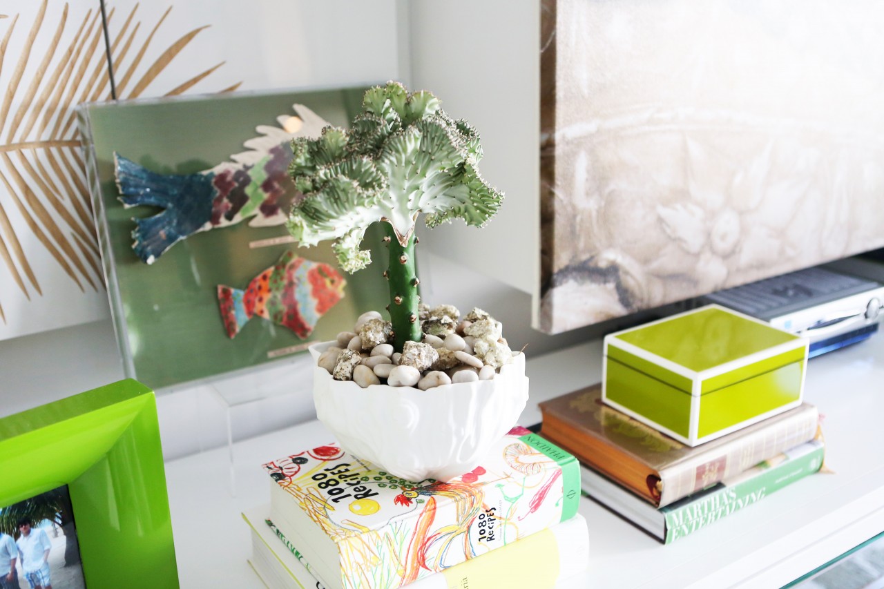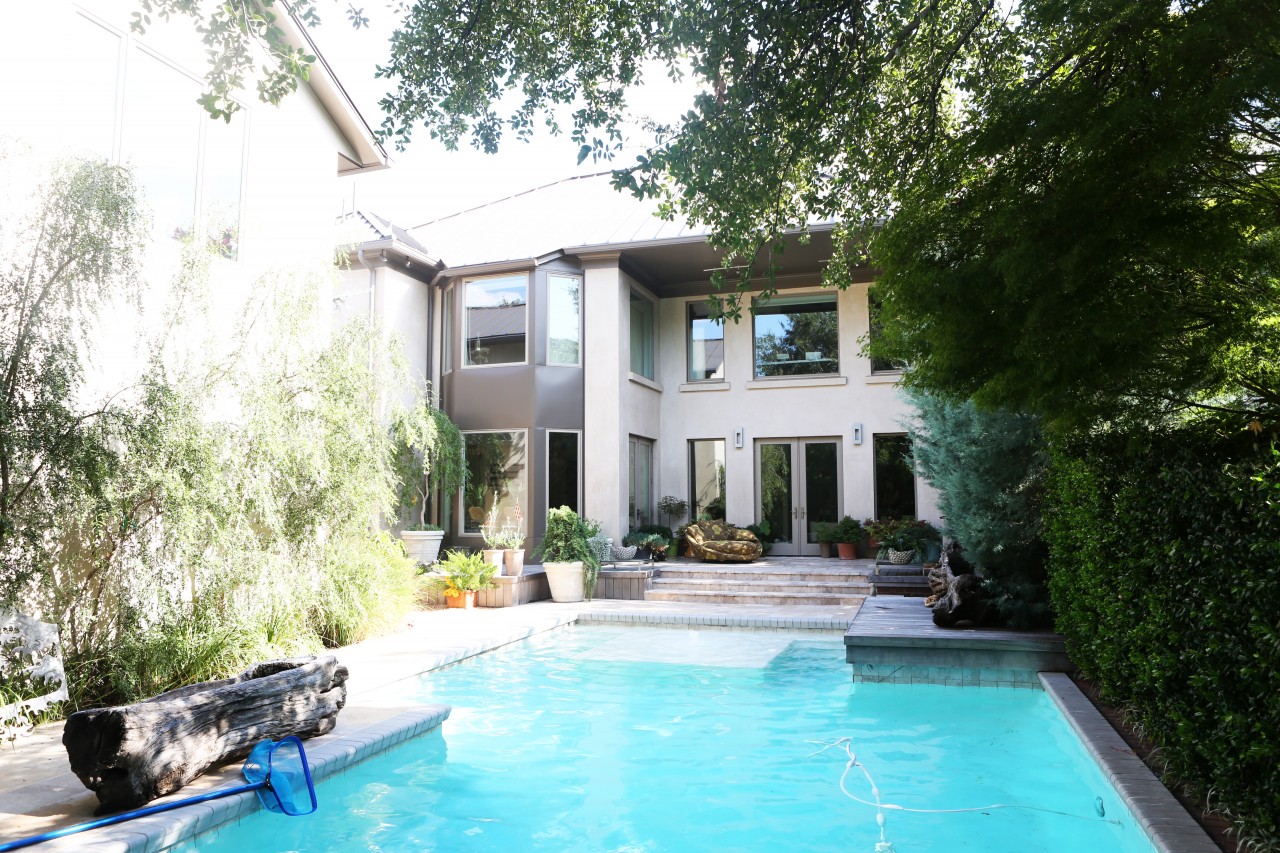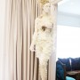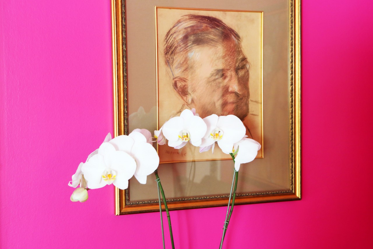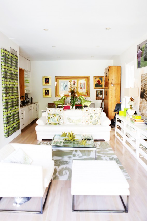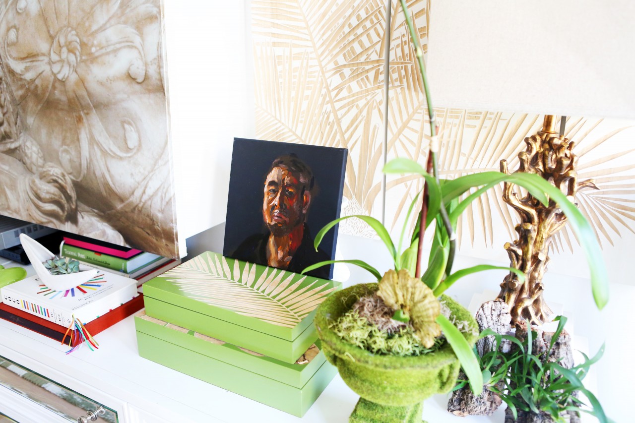 Everything, from the wall paper to the rugs, from the flower arrangements to the chandeliers, from the frames to the books, every piece of furniture looks like it was built and arranged yesterday by a team of obsessive-compulsive, Red Bull chugging bonsai artists. The house is finished. It’s done. There’s not a thing out of place. It looks like a decorator’s wet dream. If you wanted to see every single adorning element in the house, you would spend days, if not weeks. My eyes jump around the rooms like Snow White’s on acid. I’m like a little kid who’s just learned how to walk because everything is new and fresh and comic-book unexpected. The curtains in the foyer are made of vinyl, “because everyone has these awfully heavy drapes in their windows”, the fuchsia carpet in the dining room has a trim Jessica hand painted on the floor – “I had to do it twice because we got a leak and we had to take out the floor boards just as I finished. I wanted to shoot myself!” – and every television is hidden by a wooden box or curtain that camouflages seamlessly into the wall. But the house is not stuffy or egg-shell fragile; it’s lived-in. There’s a cat named Brynn, a Shihtzu named Vodka, a teenager called Sloane, aka the Sloane Ranger, and Jessica does all the cooking, folding, pouring, driving, and growing herself. She runs this house.
