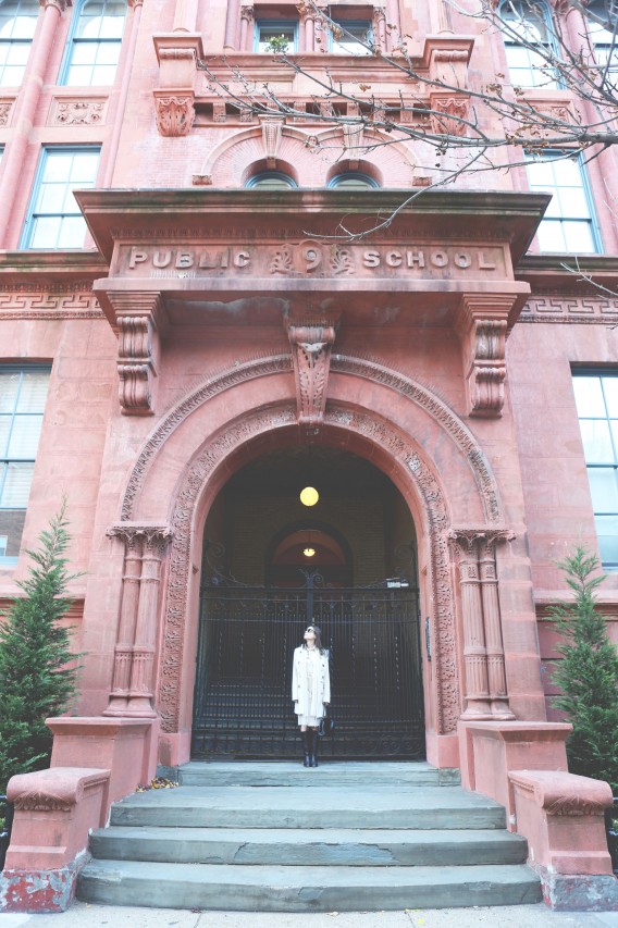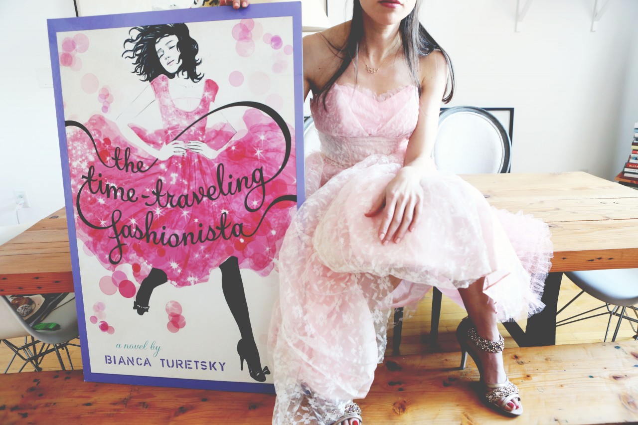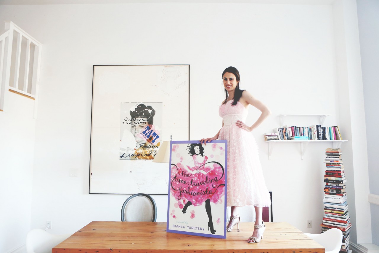 During what reporters describe as a record breaking cold front in November, I find 34-year old Bianca Turetsky curled up in a white Eames bucket chair in her living room. She looks very much like I’d expect any full-time writer to dress: skinny, grey jeans that have stretched from prolonged sitting, a classic, navy, cashmere sweater that’s unassuming in its quality, and crumpled ballerina slippers that have seen better days. Her hair is loose and a little tangled – how long has she been sitting there? Does she realize the window is open and a blizzard is on its way? I can imagine Bianca stationed in that very spot for days and just getting up when nature or her editor calls. I understand why she says that writing the The Time-Traveling Fashionista books is “an exercise in wish fulfillment”, a vintage shopper’s dream to live vicariously through her protagonist’s historical adventures. “The idea came to me after visiting this really fun vintage shop in New Haven called Fashionista Vintage and Variety,” she recalls. “I tried on a pink party dress that belonged to a Mrs. Baxter from Newport, Rhode Island. The owners of the store were telling me a bit about her, and I couldn’t help but wonder what her life was like, what the last gala or fancy event was that she wore this dress to. Was she in love? Was she happy? And how in a way, her memory and story was being preserved through this garment. My protagonist Louise actually gets to be Mrs. Baxter.”