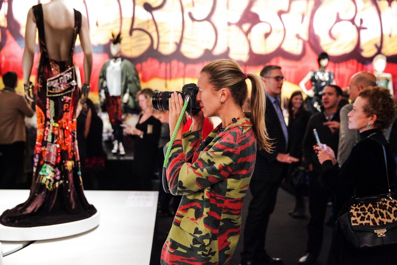 I wish you could have been there on Friday night. The man is hilarious! I instagrammed the fifteen seconds where he tells Kristina O’Neill from the Wall Street Journal about his teddy bear. As a boy he was not allowed to have a doll, so he dressed up the next best thing, Nana, in the very first cone bra. That was 1957. Now, at 61, Jean-Paul Gaultier is still the life of the party. With his thick French accent and elaborative gesticulations he entertained an audience of about one hundred fans at the Brooklyn Museum with funny anecdotes about his early life and extensive career. He told us how he would send sketches to designers in the hopes of being hired. (The first smart guy to do so was Pierre Cardin.) He told us how he went to a crazy tattoo show in London and got inspired to do an entire collection of T-shirts with sleeves that looked like the real thing. And he remembered the moment he saw Madonna for the first time on television and loved the way she dressed. He had so many great stories!